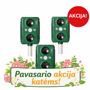 Jeigu nutirpo sniegas ir ėmė kiemą teršti katės ar valkataujantys šunys, prietaisas jums puikiai padės – katės, šunys išeis kitur.
